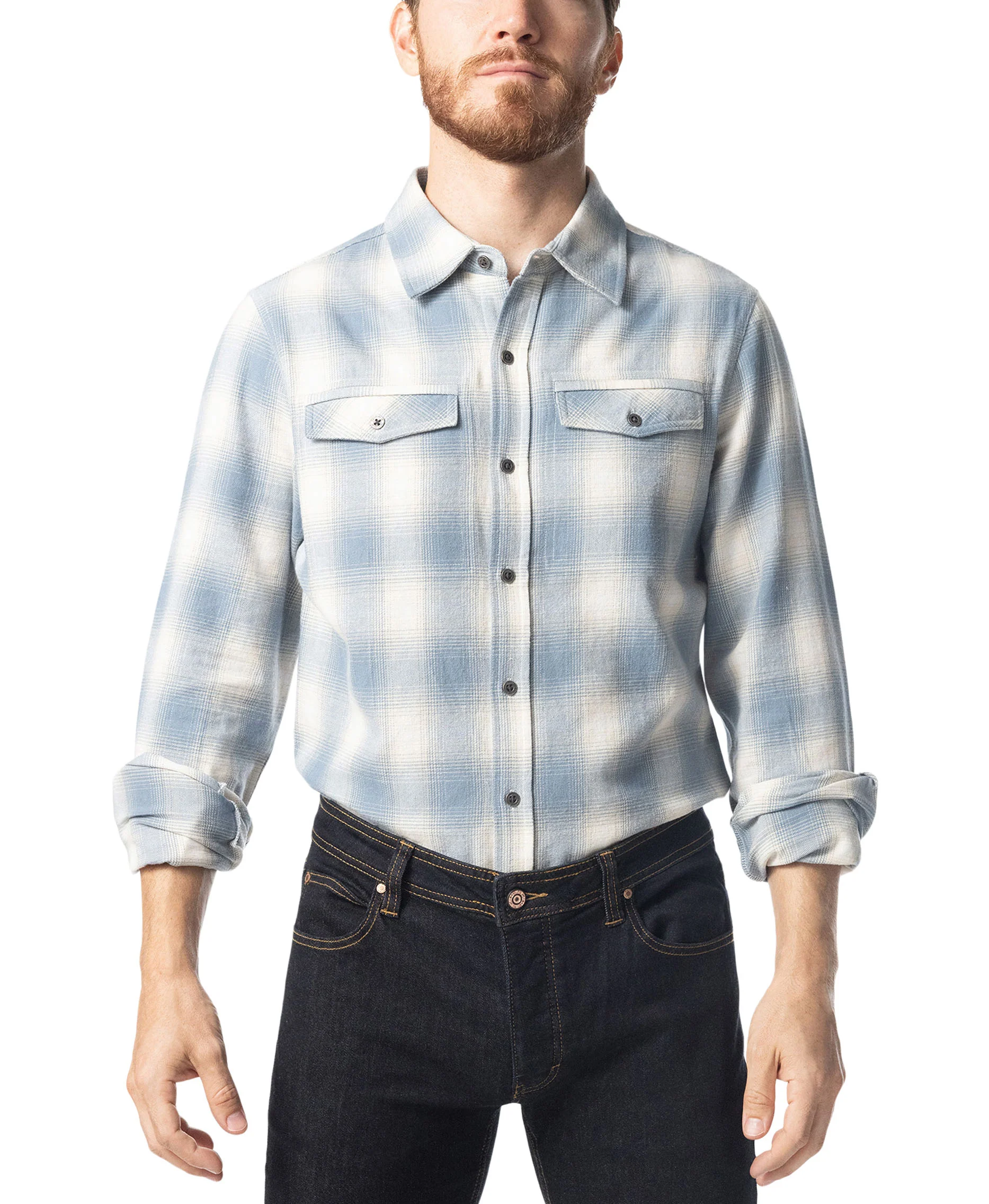 The Brawn Long Sleeve Shirt in Perry Blue delivers laid-back style with a built-in edge. This fitted button-down features a cool-toned plaid that keeps it classic, while darting at the back gives it a tailored shape that shows you off without trying too hard. Finished with dual chest pockets and 'Nasty Pig Inc' buttons, it’s rugged, refined, and ready to go wherever you take it—from dive bar to dance floor.